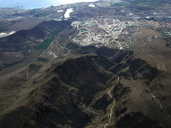 Археологические находки говорят о том, что коренное население острова, гуанчи, проживали в районе Адского ущелья. Были найдены пещеры, в которых проживали гуанчи. Некоторые из пещер имели на стенах типичные узоры.