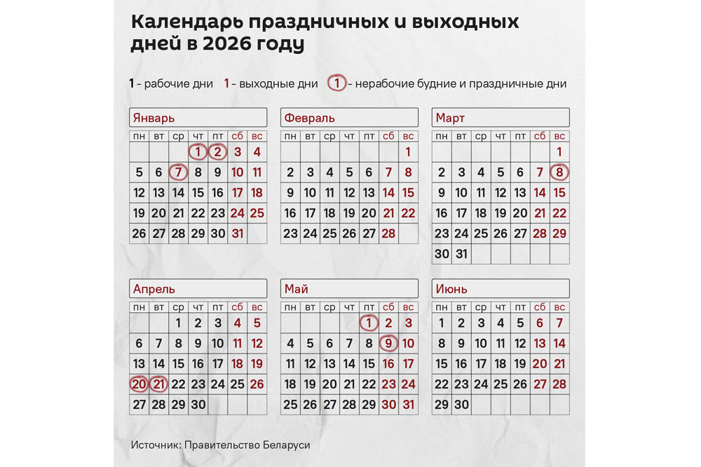 Как будем отдыхать и работать в Беларуси в 2026 году